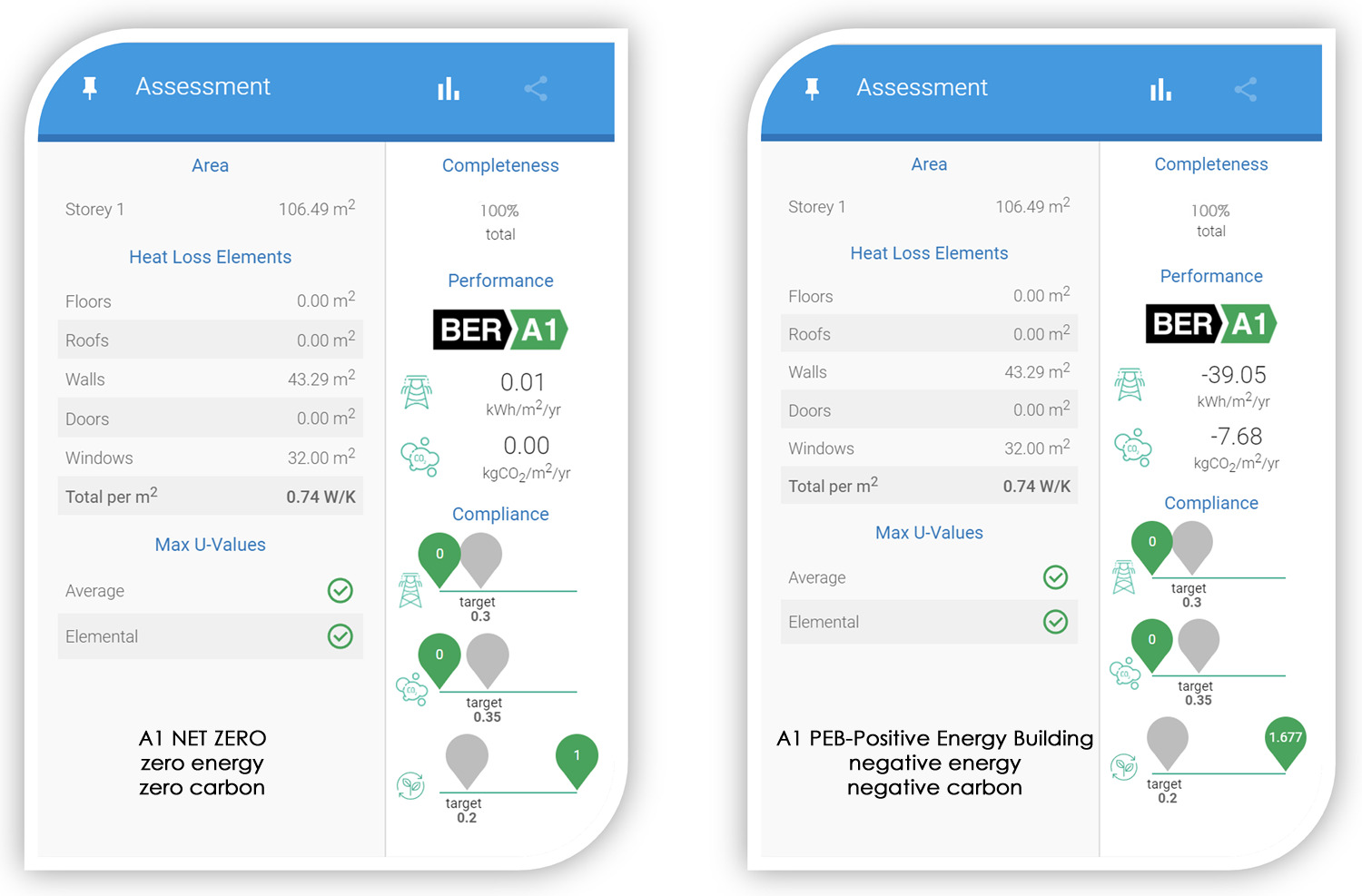 IE Example of Provisional PRS Apartment (106 sqm) Energy Ratings, A1 Net Zero and A1 PEB. (click to enlarge)