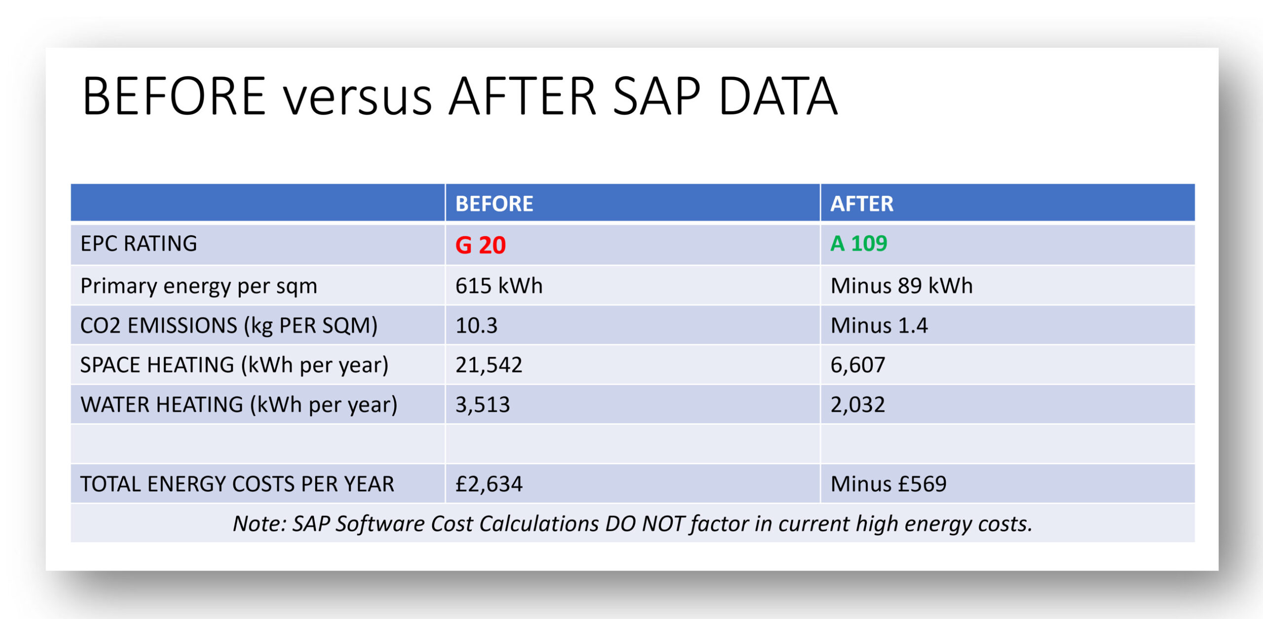 The following is the new provisional EPC of the home once upgraded. The rating is now beyond Net Zero and is Net Zero PLUS. – A 109 EPC Rating.